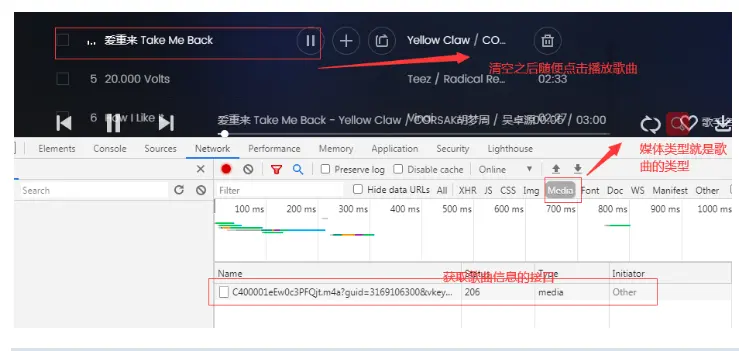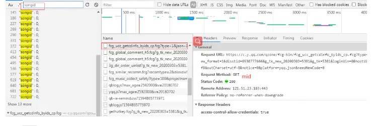 第四步:分析上面接口,找出两个接口 对照参数,找到下面这条接口里面就有songmid