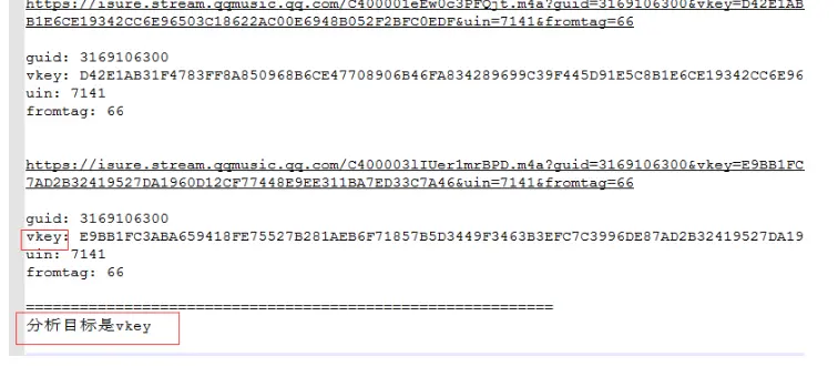 到此找到了vkey的获取方式,这个prul其实就是下载的真实链接