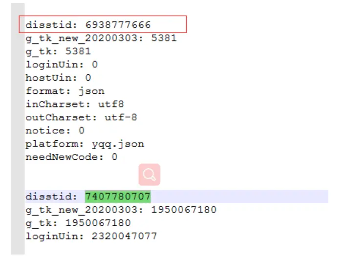 base_url = 'https://c.y.qq.com/qzone/fcg-bin/fcg_ucc_getcdinfo_byids_cp.fcg?type=1&json=1&utf8=1&onlysong=0&new_format=1&disstid={}&g_tk_new_20200303=1950067180&g_tk=1950067180&loginUin=2320047077&hostUin=0&format=json&inCharset=utf8&outCharset=utf-8¬ice=0&platform=yqq.json&needNewCode=0'.format(