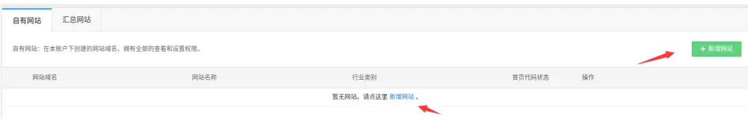 2: 注册成功后登录,进入到下面界面,点击新增网站按钮