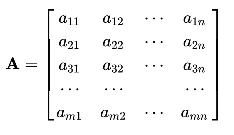 由 m × n 个数aij排成的m行n列的数表称为m行n列的矩阵,简称m × n矩阵。记作: