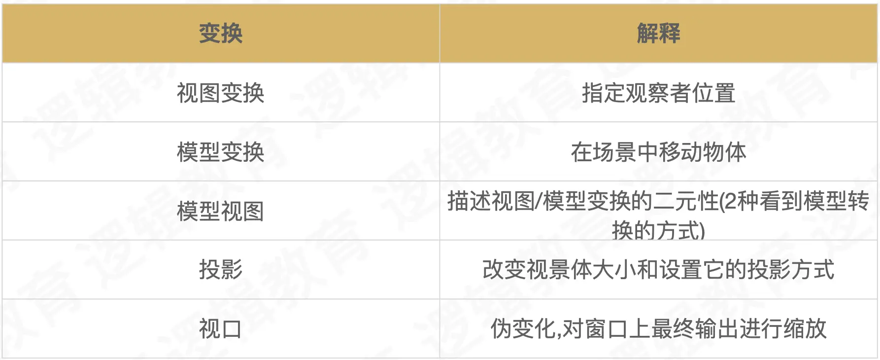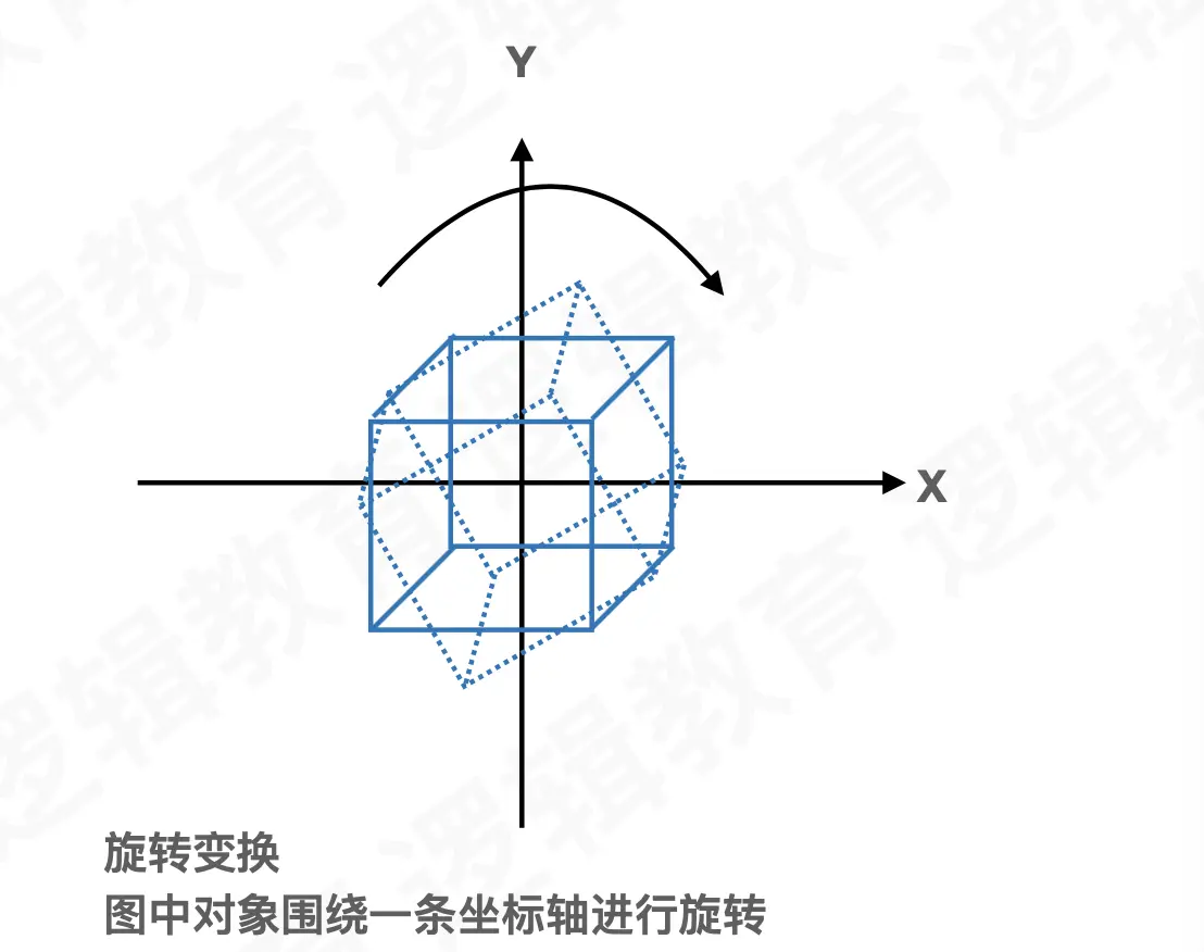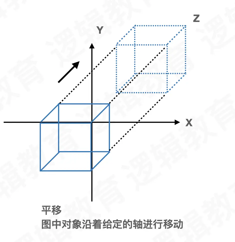 当一个图形发生平移、旋转和缩放时,其实是在平移、旋转和缩放图形上面的所有顶点。而我们可以通过设置投影矩阵、视图变换矩阵和模型矩阵与顶点向量进行相乘,从而将平移、旋转和缩放后的结果映射到顶点坐标上得到新的顶点坐标。