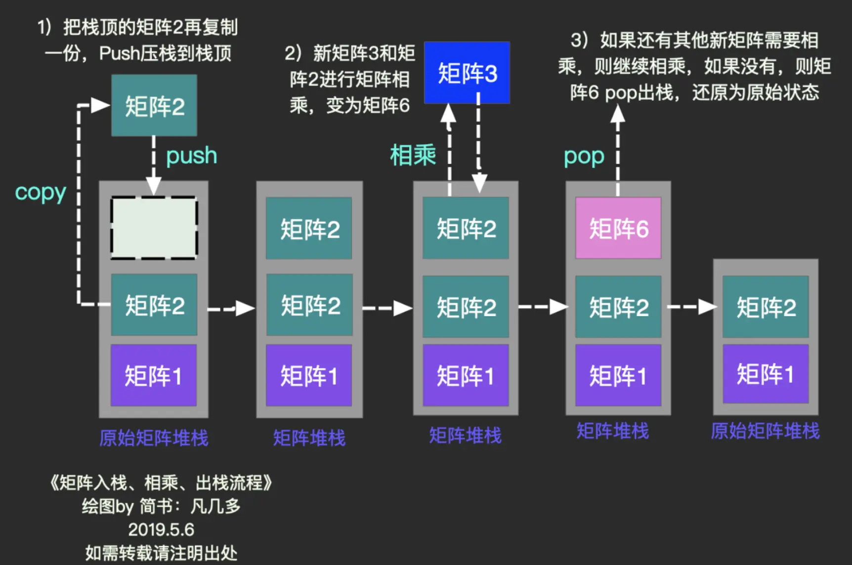 - 3.从栈顶获取栈顶矩阵,将栈顶矩阵与模型变换矩阵相乘,并将结果压入栈顶。