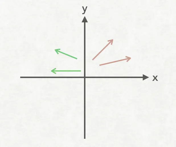 上图分别展示了在 2D 向量 和 3D 向量, 向量是没有位置的, 只有方向和长度大小。