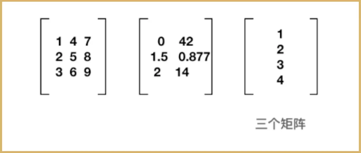 在线性代数中, 矩阵就是以行和列形式组成的矩形数字块(向量是标量的数组,矩阵是向量的数组)。