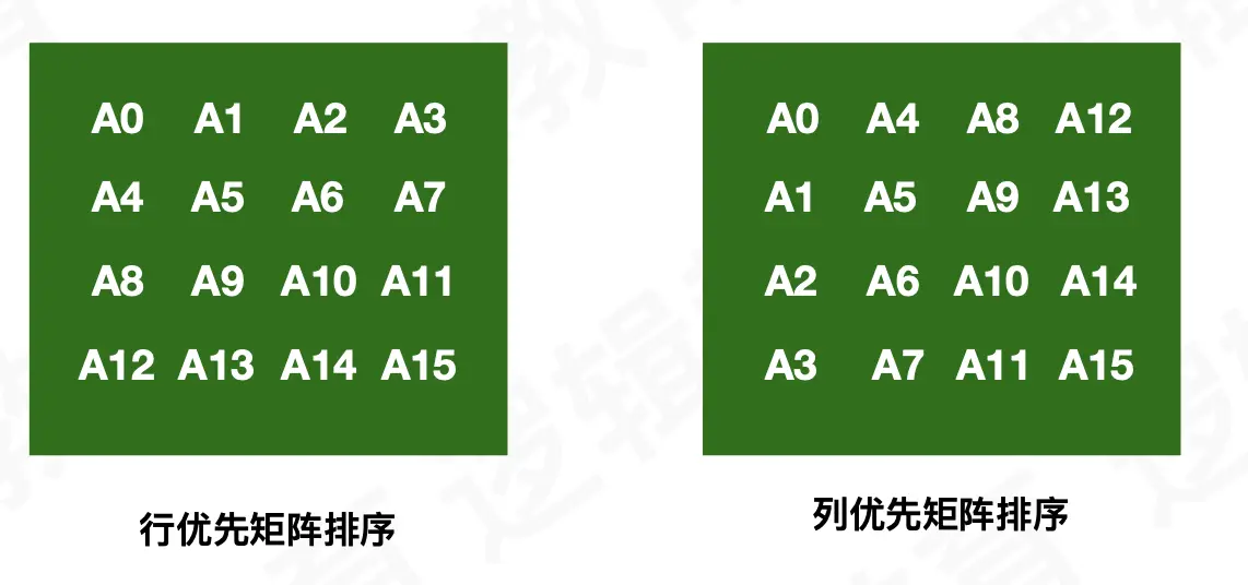 这里在其他的变成标准中, 许多矩阵的定义是使用的 二维数组。但是在 OpenGL 的约定里, 更多倾向的是使用 一位数组。原因是 OpenGL 使用的是 Column-Major (以列为主) 排序的约定 (也就是上面提到的 转置矩阵)。