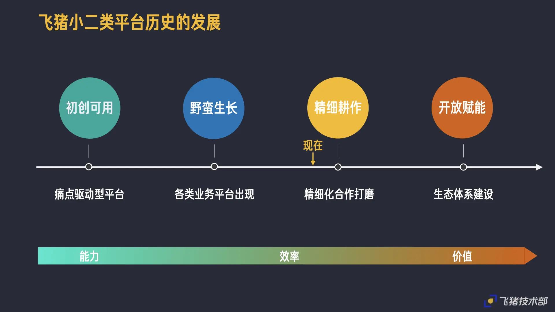 在12年的时候,阿里ALLIN 无线过程中,飞猪App当时也随之产生了,相当于工具属性,用于给用户快速查询机票门票信息;等到了14年左右工具属性逐步丰富起来,同时经过双十一的火爆,慢慢转变成一个营销卖货的属性,当时各种营销平台慢慢做起来了;