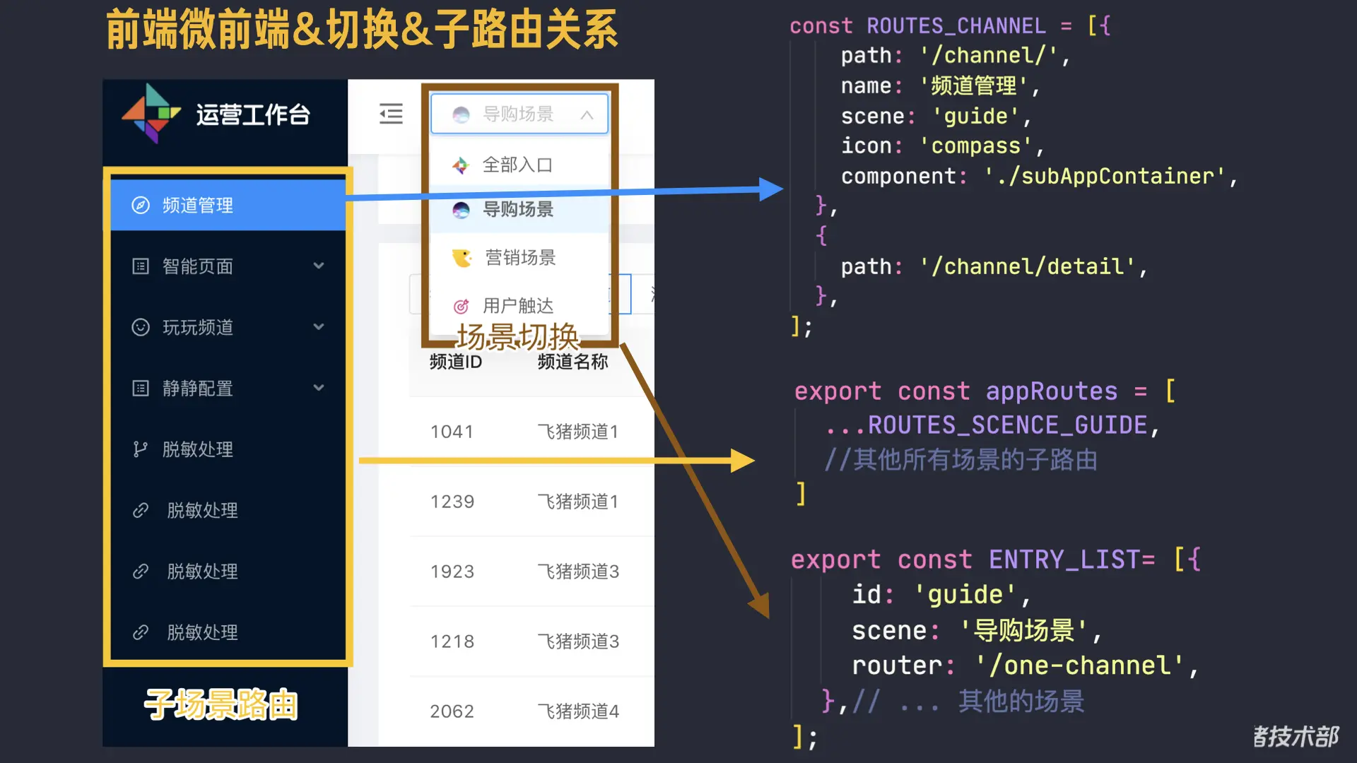 为解决以上痛点,我们启动一体化运营工作台建设项目,旨在借助新技术探索和升级给运营同学提供更好更高效的运营平台解决方案,一期目标为技术侧的探通,完成工作台框架的搭建,满足多平台场景使用,沉淀一套以现有业务为基础的泛运营平台微前端解决方案