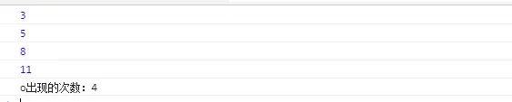 console.log('o出现的次数:' + num)