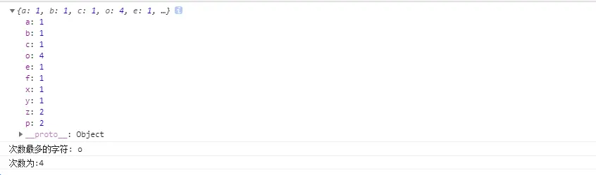 console.log("次数最多的字符:", ch)
