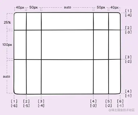grid-template-columns: [first] 40px [line2] 50px [line3] auto [col4-start] 50px [five] 40px [end];