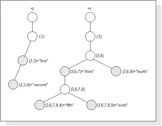 发出上一条语句时,Caché会将^Y的一部分复制到^X(2,3)中。现在,全局变量^X的结构如下图所示。