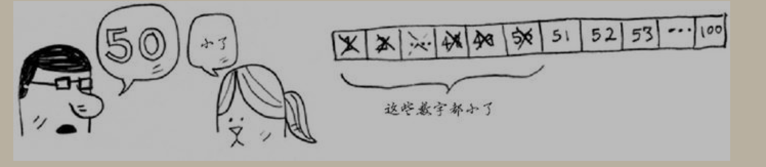 50开始,小了,排除了一大半的数字,至此,你知道1~50都小了。