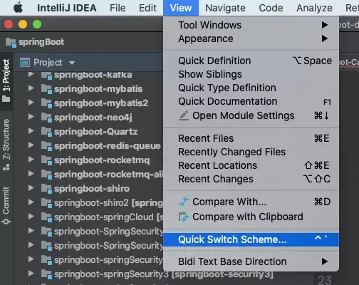 在view中点击Quick Switch Scheme,然后在弹出的对话框中点击Themes,可以更换IDEA的主题。