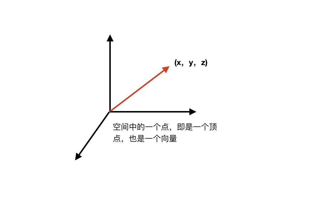 - OpenGL:在 3D 笛卡尔坐标系中的⼀个顶点,也就是由XYZ三个值构成一个值就是向量。