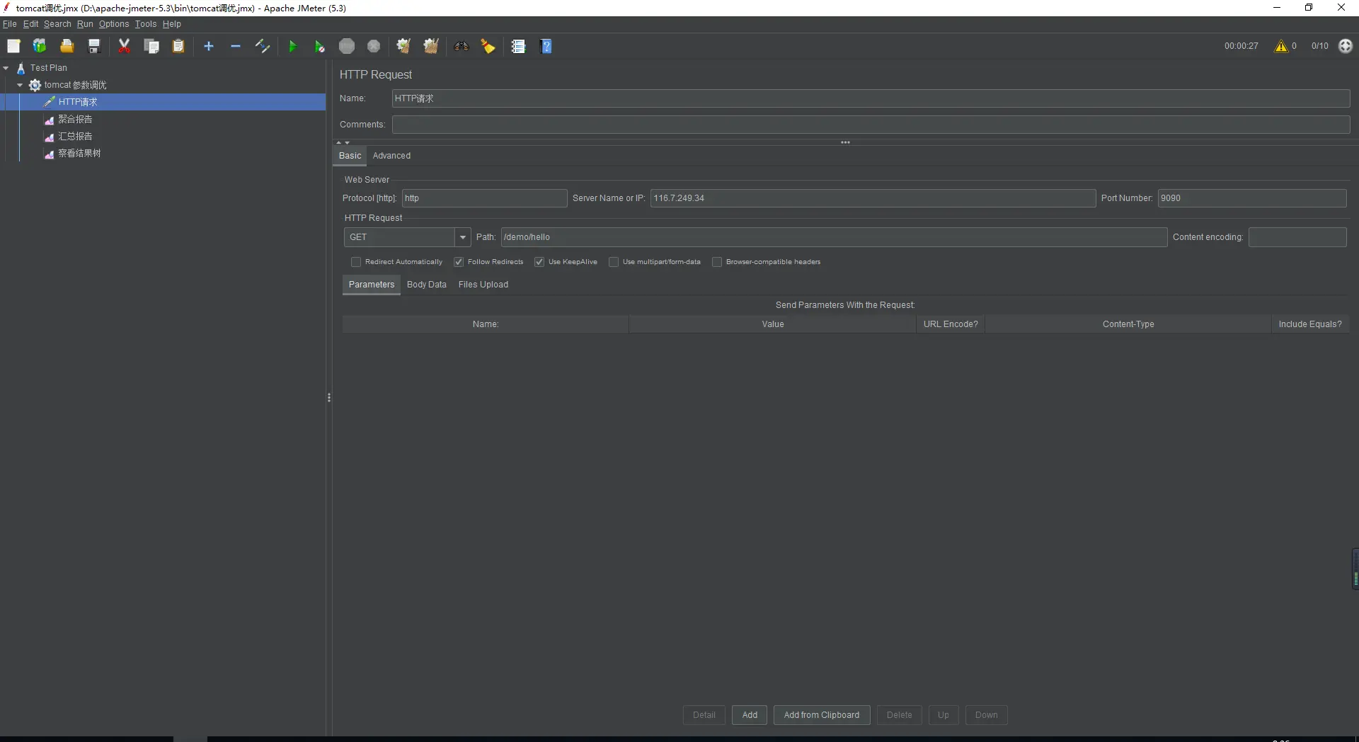 将jmeter测试用例中http请求地址改成linux服务器中的地址