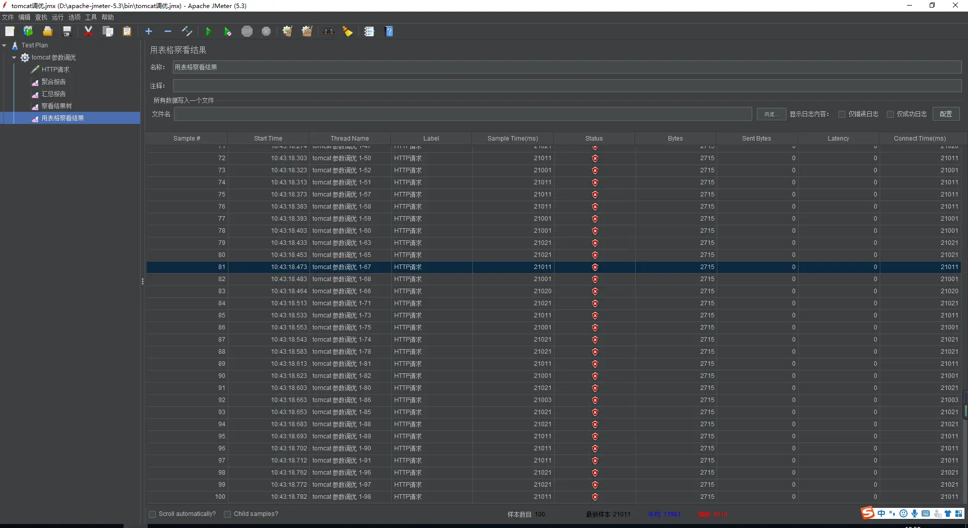 吞吐量为1秒处理5个左右,异常请求达到51个