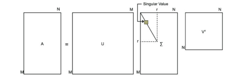 我们假设原始数据集矩阵D是一个mxn的矩阵,那么利用SVD算法,我们可以将它分解成三个部分: