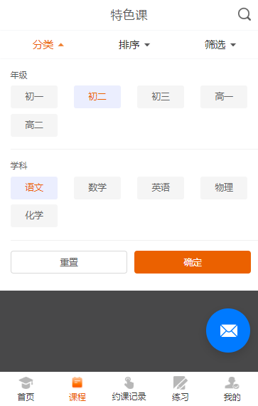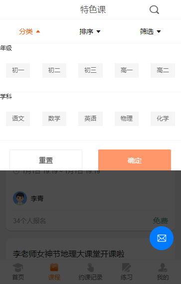 比如这个项目当中分类中的年级学科 通过请求后台接口获取到数据