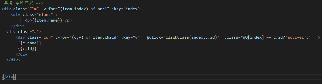 当点击年级中某个数据或学科中某个数据 需要将当前的下标及id传一下 并加上样式