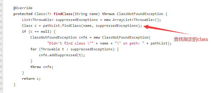 实现非常简单,从 pathList 中查找 Class。 继续查看 DexPathList