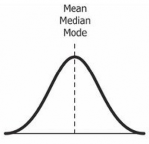 你可以在上图中看到,同一条线表示平均值、中值和众数。这是因为完全正态分布的平均值、中值和众数是相等的。