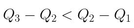 在上面的框线图中,你可以看到Q2靠近Q1。这代表了一个正偏态分布。根据四分位数,可以通过以下公式得出: