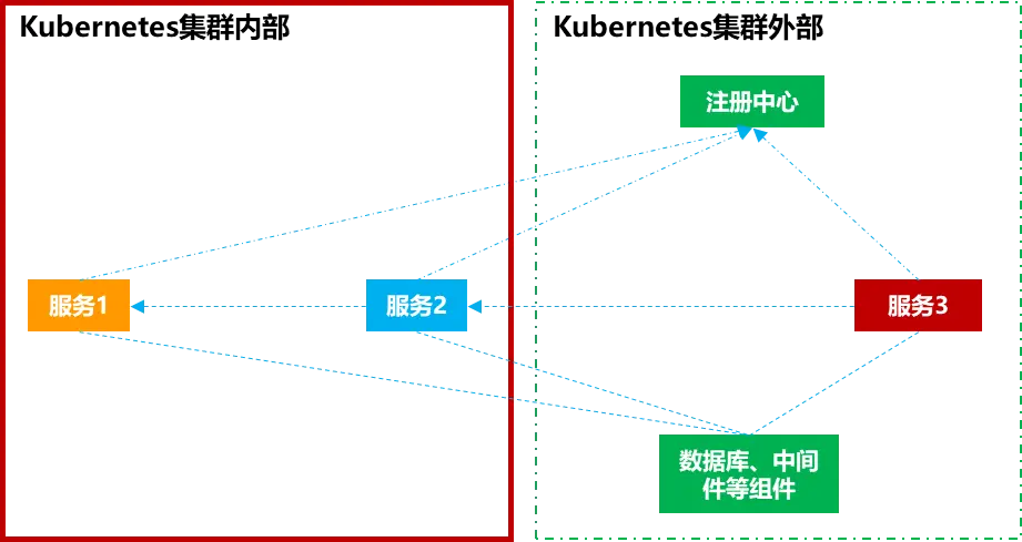 部分服务也可能部署在集群之外, 比如容器平台试用阶段(如图:服务3)