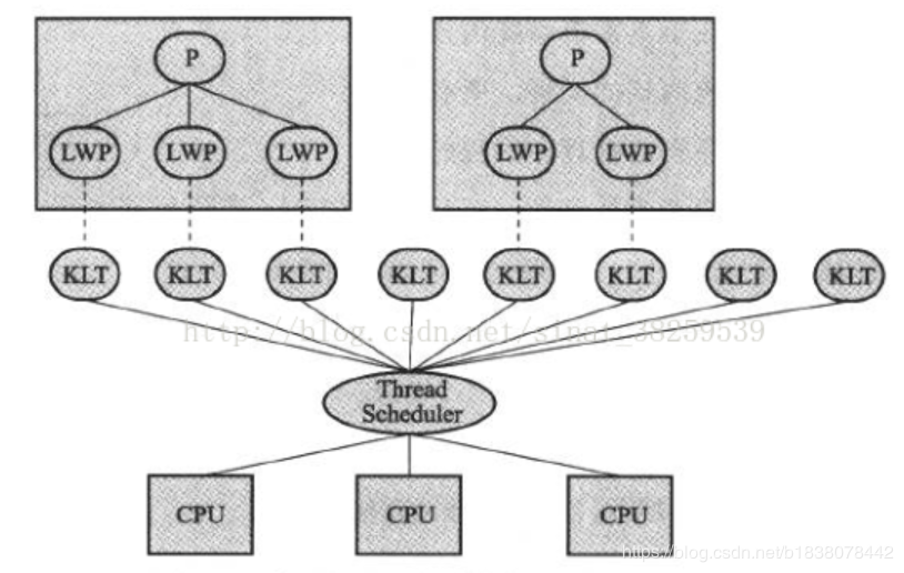 使用用户线程加轻量级进程混合实现