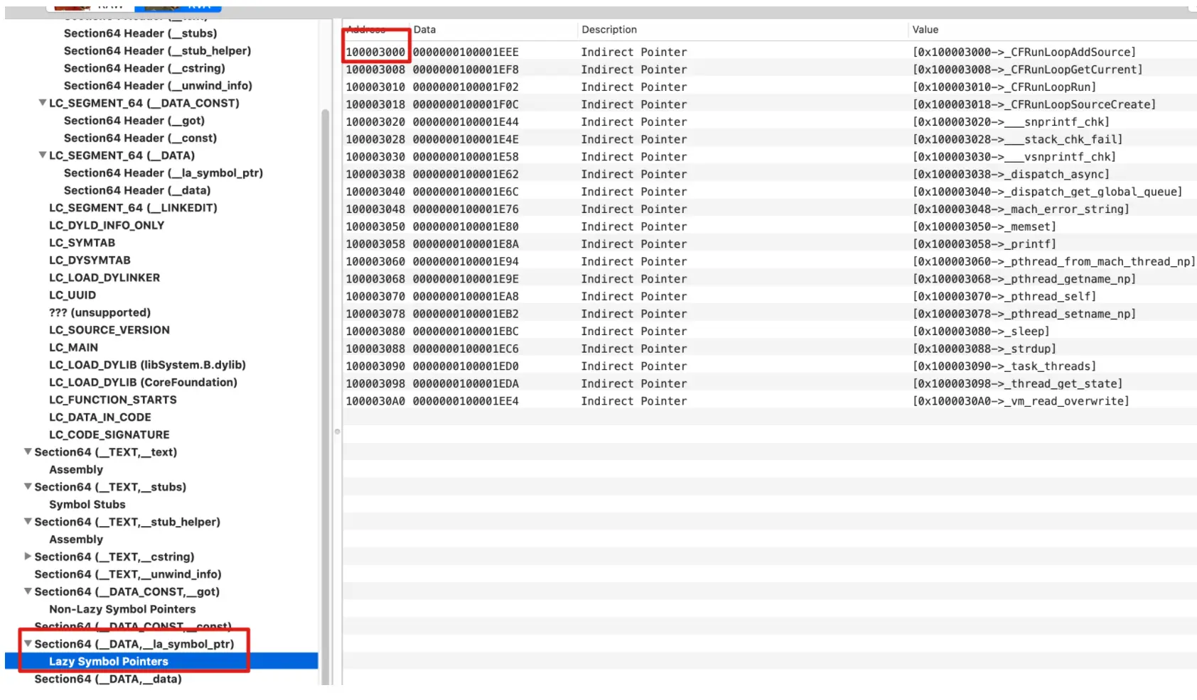 与之对应的是_DATA.__la_symbol_ptr节,其内容如下图所示: