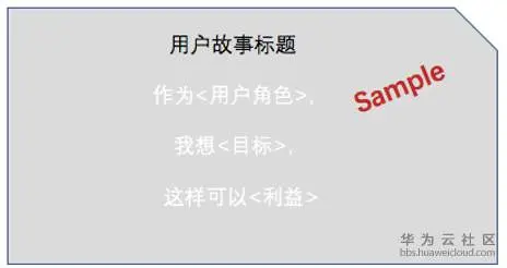 卡片非常简单,最初可以写在便利贴上,有一个通用的格式,如下面用户故事模板图,即写明用户种类(即用户角色)、这类用户想要达成什么(目标)以及用户为什么想达成目标(收益)。