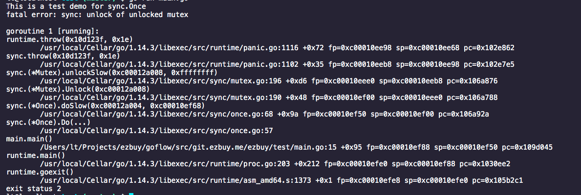 所以,once在进入Do函数的时候进行了其内部的mutex进行了lock()操作,进行二次值赋值的时候,once是一个新的没有进行lock 操作的,而Do()继续对同一地址上的once进行操作,在return之前进行defer o.m.Unlock() 而产生程序错误。