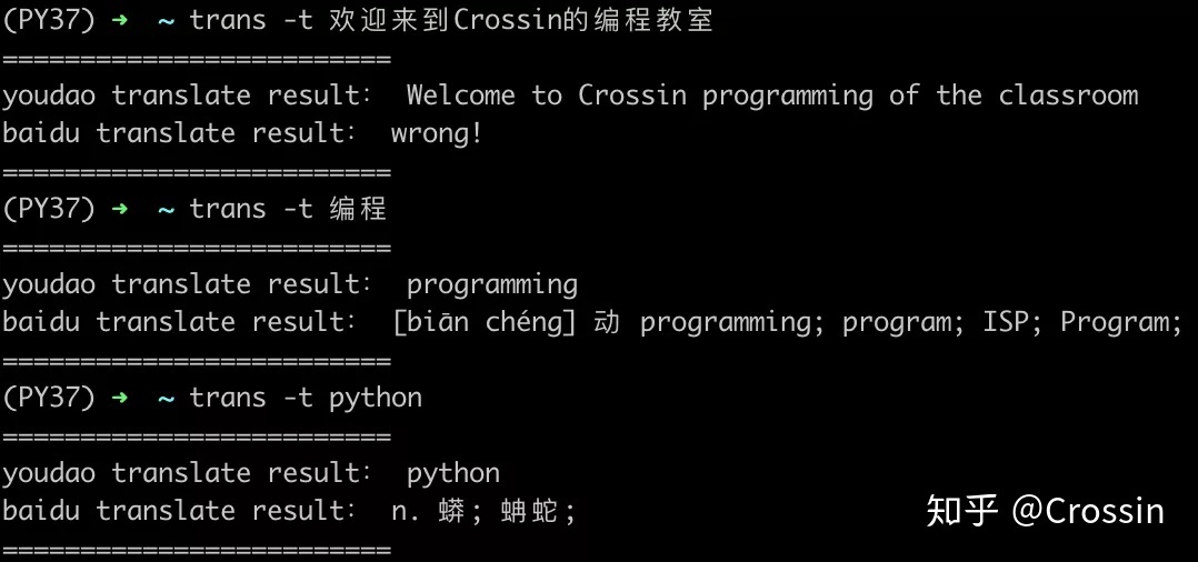 于是我就想,能否用万能的 python 制作一个命令行下的翻译工具呢?