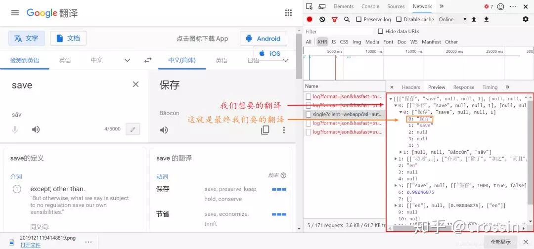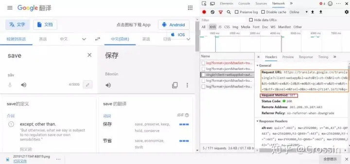 接下来我们来看看与众不同的谷歌翻译,这个玩意实在有些复杂。谷歌翻译是有 api 的,但是要钱……我不想付钱……网上有大佬给出了解决方案(这里我们简单地看一下原理):