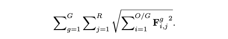 一般而言,为了减少剪枝带来的准确率影响,可以通过使用L1正则方法引导权值尽量稀疏。由于分组卷积的特性,CondenseNets需要更严格的列稀疏来引导组内的卷积尽量使用相同的输入子集,因此采用group级别的稀疏性,论文提出group-lasso正则化: