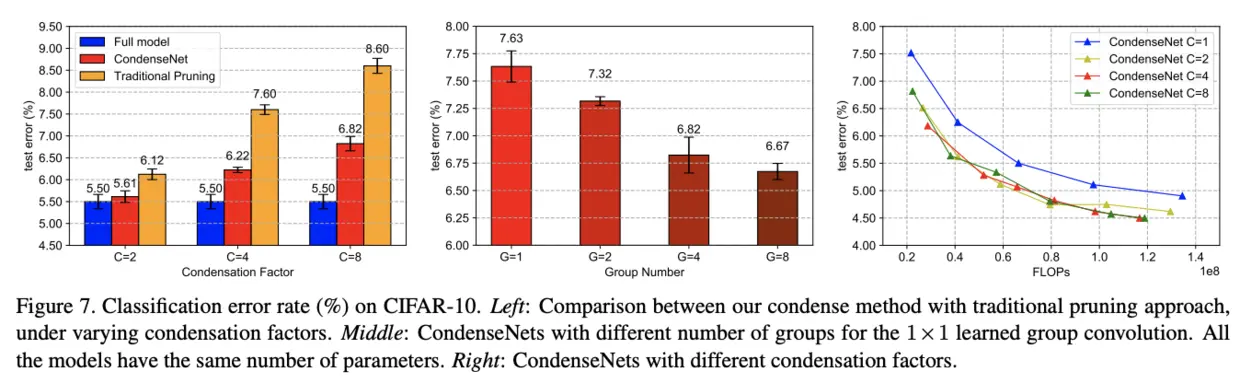 CondenseNet特点在于可学习分组卷积的提出,结合训练过程进行剪枝,不仅能准确地剪枝,还能继续训练,使网络权重更平滑,是个很不错的工作
