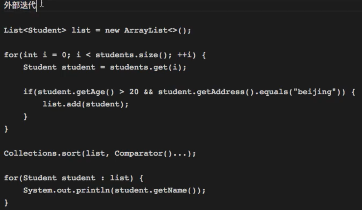 内部迭代和外部迭代本质刨析:(操作流就像英语中的完形填空,直接操作集合就是完成一个完整的命题作文)
