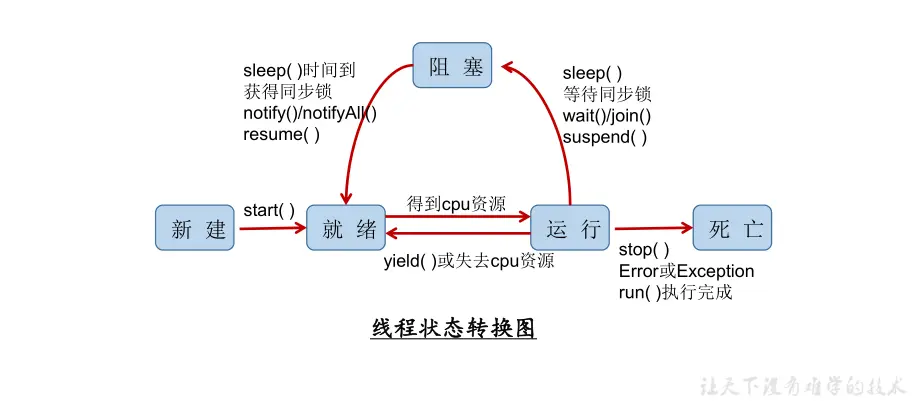 - 一个线程对象只能调用一次start()方法启动,如果重复调用了,则将抛出以上的异常