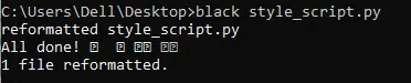 black style_script.py完成后,black可能已经完成了更改,你将收到以下消息: