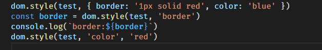 dom.style(test, { border: '1px solid red', color: 'blue' })