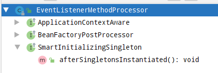 1. EventListenerMethodProcessor 是@EventListener的生命周期处理器,实现了 SmartInitializingSingleton接口的afterSingletonsInstantiated 方法,进行了: