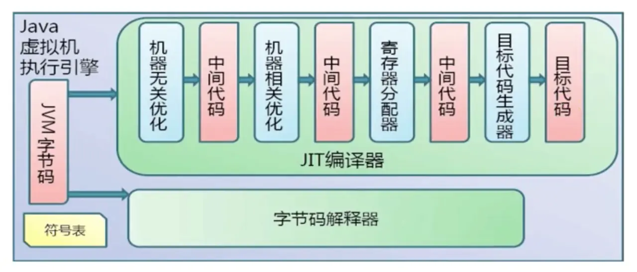 - 并且随着程序运行时间的推移,即时编译器逐渐发挥作用,根据热点探测功能,将有价值的字节码编译为本地机器指令,以换取更高的程序执行效率。
