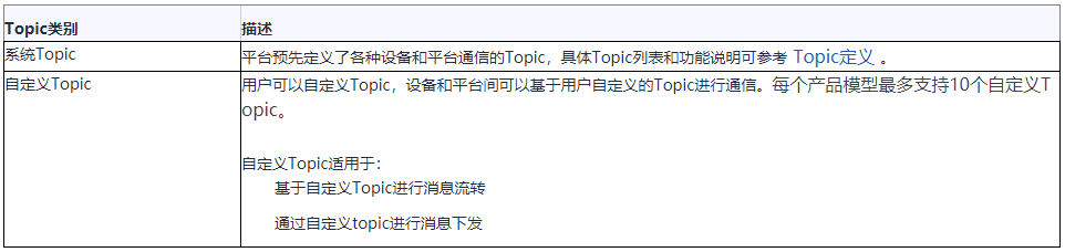 自定义Topic功能用于MQTT协议设备接入物联网平台的场景,支持设备消息上报、平台消息下发的Topic进行自定义。根据Topic不同,应用侧可实现不同的业务逻辑处理,也适用于应用侧和设备侧之间,设备无法按照产品模型中定义的属性或命令进行数据上报的场景。