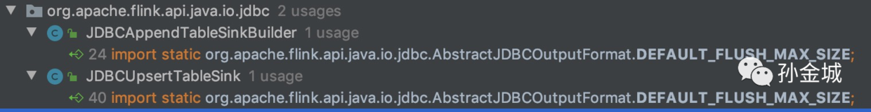 没错,这一点你说的很对,在 Flink 1.10 中 JDBC OutputFormat 的基类 AbstractJDBCOutputFormat 里面和这相关的变量 DEFAULT_FLUSH_MAX_SIZE 默认值是 5000,所以在你学习测试时候由于测试数据少(少于 5000),数据一直在 buffer 中,直到数据源数据结束,作业也结束了,才将计算结果刷入 MySQL,所以没有实时的(每条)写入 MySQL。如下: