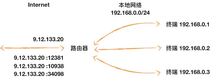 为了解决 IP 地址不足的问题,NAT 给一个局域网络只分配一个 IP 地址,这个网络内的主机,则分配私有地址,这些私有地址对外是不可见的,他们对外的通信都要借助那个唯一分配的 IP 地址。所有离开本地网络去往 Internet 的数据报的源 IP 地址需替换为相同的 NAT,区别仅在于端口号不同。