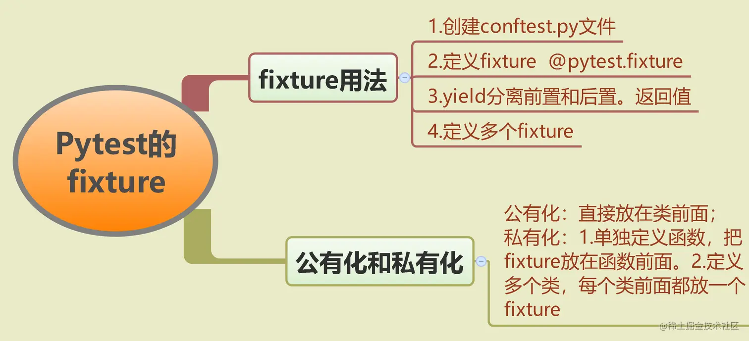fixture在项目当中作为公共用法来用。可以专门定义额外的setUp和tearDown,在单独的地方,不放在测试用例当中。测试用例将它主动引进来,作为它的前置和后置就好了。
