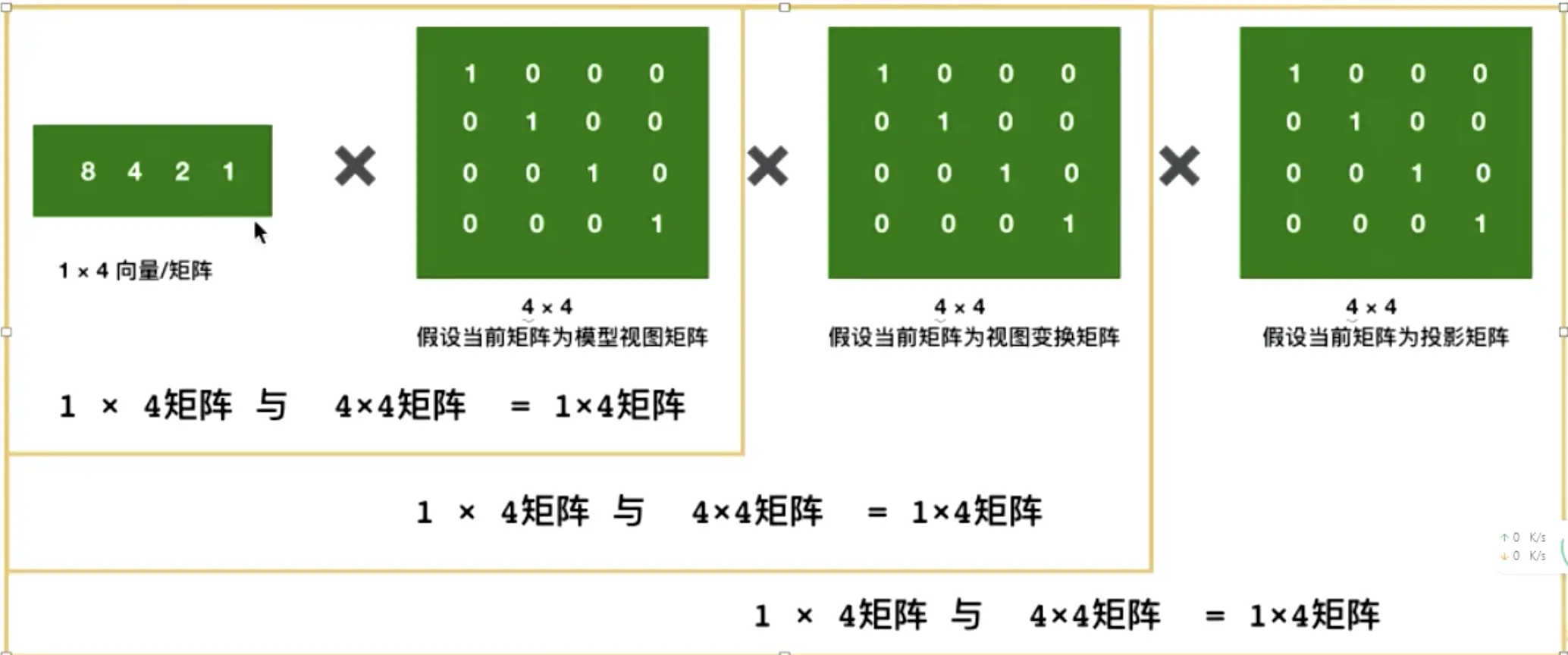 - 向量 X 单元矩阵 = 向量 X 1,不会发生任何变化