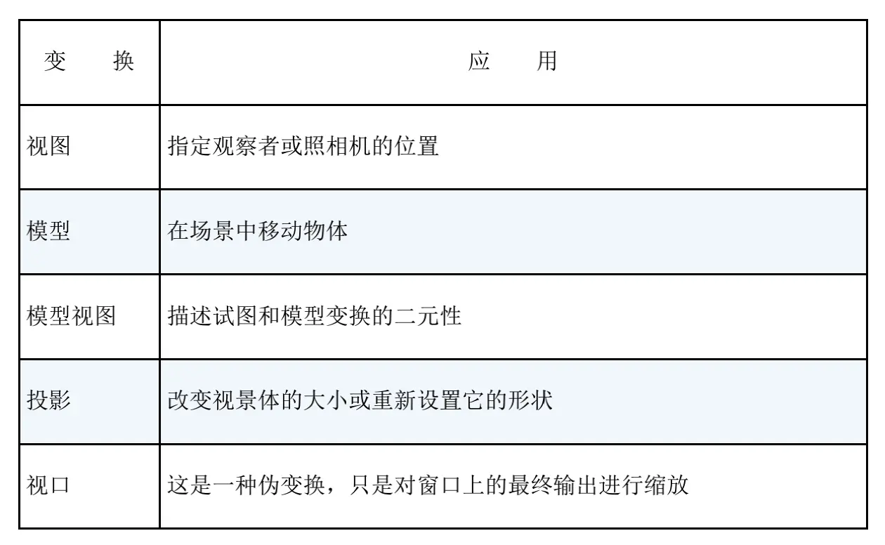 - 从大局上考虑,在应用任何其他模型变换之前,必须先应用视图变换。这样做是因为,对于视觉坐标系而言,视图变换移动了当前的工作坐标系。所有后续变换随后都会基于新调整的坐标系进行。然后,在实际开始考虑如何进行这些变换时,就会更容易地看到这些变换是如何实现的了。 (引用《OpenGL 超级宝典 第5版》96页)