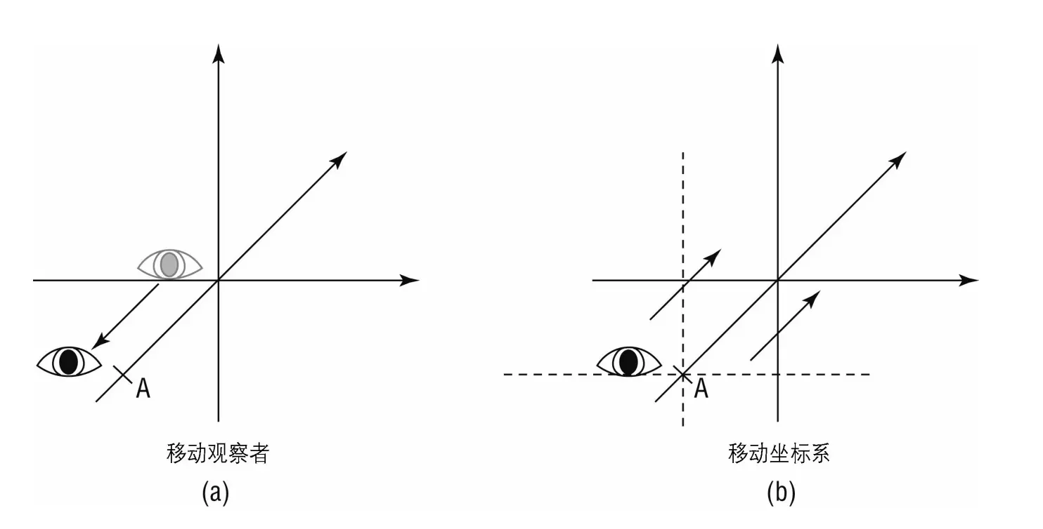 如上图将对象向后移动和将参考坐标系向前移动在视觉上没有区别。