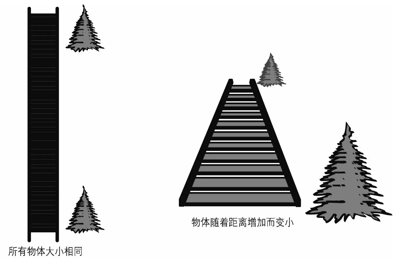 - 透视投影的特点就是透视缩短(foreshortening),这种特性使得远处的物体看起来比近处同样大小的物体更小一些(远小近大)。